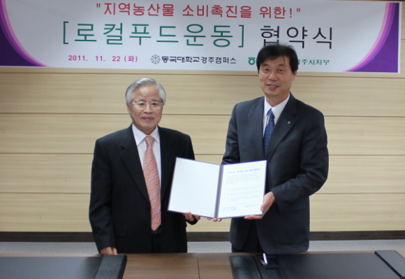 동국대학교 경주캠퍼스는 22일 오전 11시 교내 백주년기념관 중회의실에서 농협중앙회 경주시지부와 지역 농축산물 소비 공동 협약을 체결했다.