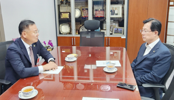 김재욱 칠곡군수가 지난 31일 국회를 찾아 국가예산 확보를 위한 발품 행정을 펼쳤다. 이날 김 군수는 국회에서 정희용 국회의원과 이만희 의원을 각각 만나 주요 국비 사업과 현안 사업을 설명하고 내년도 정부예산 증액을 요청했다고 밝혔다.