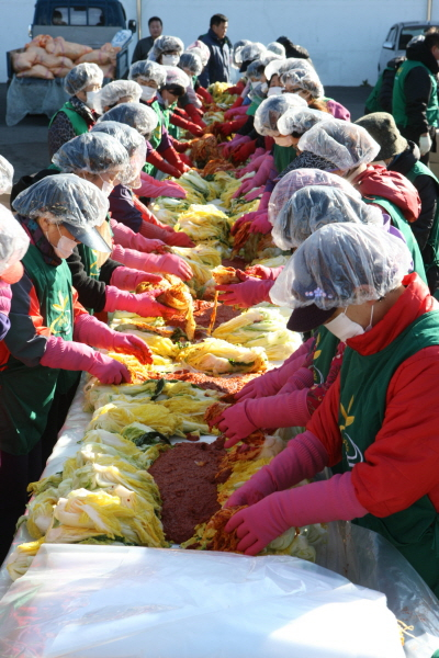 감포읍, 건천읍, 현곡면, 황남동, 불국동 등 5개 읍면동에서 휴경지경작 사업으로 재배한 배추 8천포기를 지난 21일부터 수확하여 다듬고 소금에 절여 씻고, 23일 황성공원에 천막을 설치하여 양념을 개는 등 모든 준비를 마친 후, 오늘 24일 이번행사를 열었다.