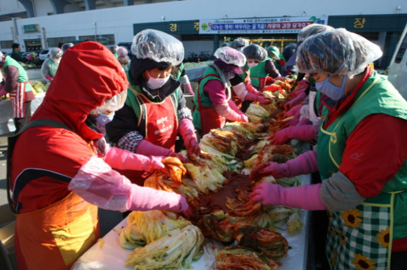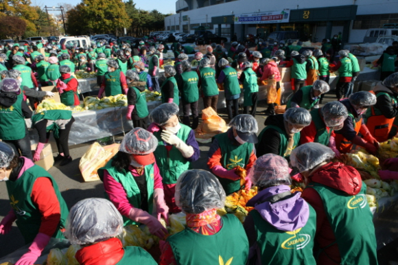 경주시 새마을회(회장 임영식)는 24일 10시부터 경주시 황성공원 시민운동장 앞 광장에서 경주시 새마을부녀회, 경주시새마을협의회 읍면동 지도자 600여명이 모여 어려운 이웃들에게 전달하기 위한 사랑과 나눔의 김장 담가주기 사업을 벌였다.