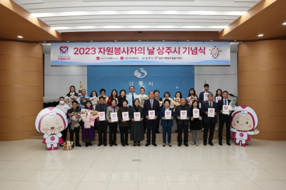 상주시종합자원봉사센터(센터장 장미향)는 12월 5일 상주시청 대회의실에서 자원봉사자의 날을 기념해 ‘세상을 잇는 우리, 자원봉사자’라는 주제로 자원봉사자의 날 상주시 기념식을 개최했다. 자원봉사자의 날(12월 5일)은 자원봉사활동기본법에 의거한 법정기념일로, 자원봉사활동에 대한 참여를 촉진하고 자원봉사자의 사기를 높이기 위해 지정됐다. 이에 상주시종합자원봉사센터는 매년 자원봉사자의 날 기념식을 개최하며, 세상을 빛낸 자원봉사자들의 노고에 감사드리고 있다. 이번 기념식에서는 국무총리 표창을 받은 다소니봉사단 김희근 회장을 비롯해 총 19팀(개인 16명, 단체 3곳)의 자원봉사자가 수상의 영예를 안았다. 국무총리 표창을 받은 다소니봉사단의 김희근 회장은 40년 교직생활 동안 학생들의 건강한 성장을 위해 노력했으며, 퇴직 후 현재까지 청소년과 청각장애인을 위한 활동으로 큰 울림을 준 공로를 인정받았다. 이뿐만 아니라 ‘2023 경상북도 자원봉사 대상–은상’을 수상한 사랑의열매나눔봉사단의 임주원님을 포함해 한국부인회 상주시지회, 적십자삼백오토봉사회 김난희님, 한국부인회 상주시지회 김순분님, 아우라봉사단 김주윤님이 경상북도지사 표창을 수상했다. 또한 ▲상주시장 표창에는 강혜진님, 박성열님, 안숙자님, 최은아님, 한찬선님, ▲국회의원 표창에는 박춘분님, 이금희님, 황명섭님, ▲상주교육지원청 교육장 표창에는 김우주님, 이선영님이 수상했으며, 상주시종합자원봉사센터와 함께 지역변화를 만드는 데 힘쓴 ㈜동천수, 경북시각장애인연합회 상주지회, 이현옥님에게 감사패를 전달했다.