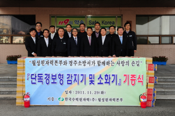 경북 경주소방서(이태형)는 29일 오전 11시 소방서에서 (주)한수원 월성원자력본부 관계자, 감포·양남·양북 읍·면장 3명, 소방공무원이 참석한 가운데 단독경보형감지기 1,000대와 소화기 200대 전달식을 가졌다.