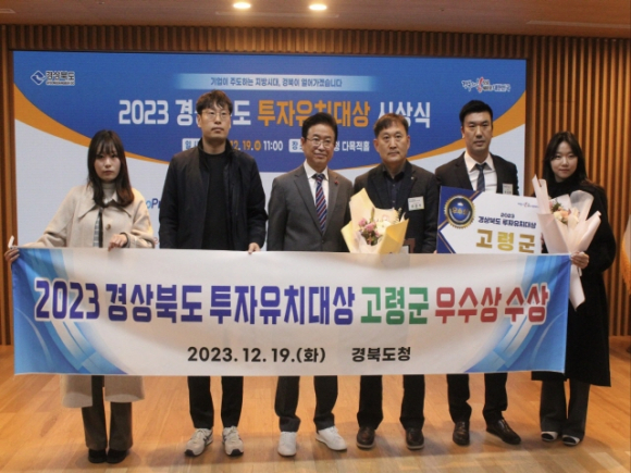 고령군(군수 이남철)은 12월 19일(화) 경북도청에서 열린 「2023 경상북도 투자유치대상」시상식에서 자치단체 부문 '우수상'을 수상했다.