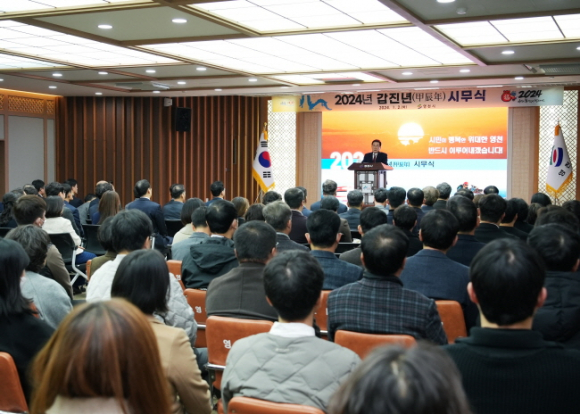 영천시(시장 최기문)는 2일 시청 대회의실에서 직원 140여 명이 참석한 가운데 2024년 시무식을 가지며 힘찬 출발을 다짐했다. 최기문 시장은 충혼탑 참배로 새해 시작을 알렸으며 시무식을 통해 “힘차게 비상하는 청룡의 기운으로 소망하는 일 모두 성취하시길 기원한다.”라고 덕담하고, 2024년에도 잘 사는 영천, 살맛 나는 영천 건설을 위해 총력을 다할 것을 다짐했다. 최 시장은 지난해 어려운 경제 여건 속에서도 영천발전의 새로운 전기를 마련하는 희망의 한 해였다고 평가하며, 역대 최대규모 투자유치(하이테크파크지구, 2,059억원), 보현산댐 출렁다리 개통, ‘영천 별아마늘’ 해외 수출, 합계출산율 2년 연속 시구단위 1위, 역대 최다 수상실적 경신(58개 기관 표창) 등의 성과를 꼽으며 시민과 공직자들에게 감사의 인사를 전했다. 또 “2024년에는 알짜기업 유치와 기업혁신 지원, 각 분야 성장동력 확보에 총력을 기울여 영천 도약의 새로운 원년을 만들어 나가자.”라며 7가지 핵심 목표로 ⧍민생안정 ⧍ 친기업 산업 생태계 구축, 인구유입과 지역경제 활력 기반 조성 ⧍ 보현산권역 관광벨트를 중심으로 한 관광산업 도약 ⧍ 부자농촌의 지속 가능한 성장동력 확보 ⧍ 지방소멸 위기 대응 ⧍ 시민이 체감하는 실질적 복지 확대 ⧍ 신뢰받는 시정구현 등을 제시했다.