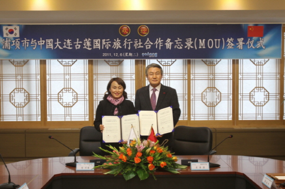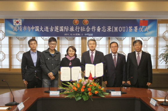 포항시가 6일 중국 구롄국제여행사(大连古莲国际旅行社)와 중국인관광객의 포항유치를 위한 협력프로그램개발, 관광홍보, 전세기 운항 등의 내용을 골자로 한 양해각서(MOU)를 체결했다.