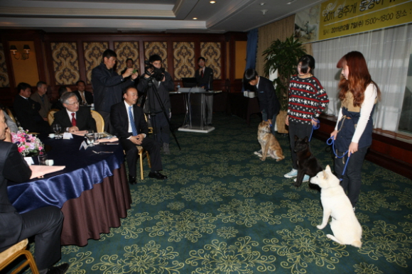 (사)한국 경주개 동경이 보존협회(협회장 최석규)는 7일(수) 토종견인 경주개 동경이의 유전형질과 종 보존대책에 대한 심포지엄과 혈통이 고정된 표준형 경주개 동경이를 시민들에게 공개했다.