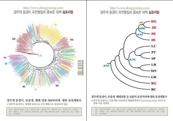 |  | | | ↑↑ 진돗개, 삽살개, 풍산개, 불개 등 12견종 396마리 혈액을 채취하여 하여 얻은 유전자 분석의 결과 | | ⓒ GBN 경북방송 | |