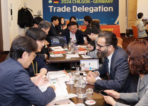 김재욱 군수가 이끄는 칠곡군 해외 무역사절단은 지난 22일 독일 하노버 인터씨티 호텔에서 세계 5개국 바이어를 대상으로 수출 상담회를 열었다.