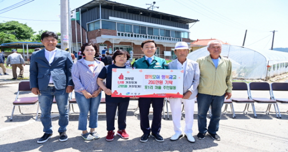 5월 14일(화) 우곡면 포1리 마을회관에서 진행한 보금자리봉사단 무료급식봉사 행사에서 포1리 마을 주민일동은 「함께모아 행복금고」 성금 200만 원을 기탁했다. 이번 성금은 포1리 마을 주민들이 관내 어려운 이웃을 돕고자 따뜻한 마음을 모은 성금으로 훈훈함을 더하고 있다.