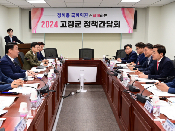 정희용 국회의원과의 2024년 고령군 정책간담회에서는 내년도 국비 확보를 위한 전략적 방안을 모색함은 물론, 군정 주요 현안에 대한 실질적인 해결책을 함께 강구 했으며, 특히, 지난해 ‘지산동 고분군 세계유산 등재’와 올해 초 ‘달빛철도 건설을 위한 특별법 통과’로 인해 지역의 새로운 변화가 예고된 시점에서 고령이 중점 추진해야 할 주요 건의사업을 설명한 뒤, 적극적인 예산 지원과 협조를 요청했다.