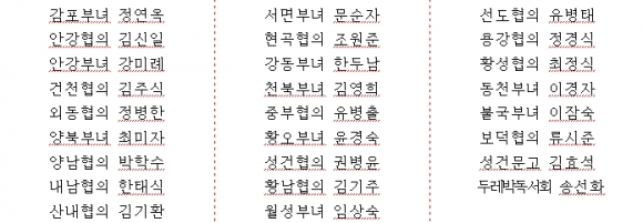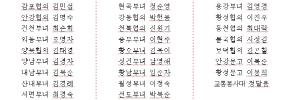 ○부녀회 최우수 - 중부동부녀회 우 수 - 현곡면 부녀회 장 려 - 외동읍 부녀회