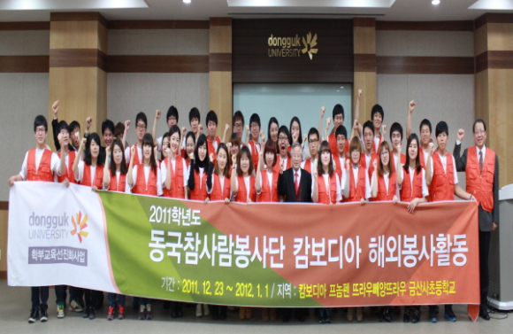 동국대학교 경주캠퍼스(총장 김영종) 동국참사람봉사단(단장 박상범)이 23일부터 2012년 1월 1일까지 9박 10일 동안 캄보디아 프놈펜에서 자원봉사활동을 실시한다.