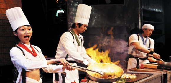줄거리는 인간이면 누구나 애용하는 일상 속의 공간인 주방을 무대로 네 명의 요리사가 등장하여 급히 결혼피로연을 위한 요리를 만드는 과정에서 벌어지는 소동이 중심내용이다. 칼·도 마·냄비·프라이팬·접시 등 온갖 주방기구와 일상용품을 가지고 사물놀이 장단처럼 두드리며 극을 이끌어간다.무대에 장승을 세우고 전통 결혼식 장면을 도입하는 등 한국적 풍경을 부각시키고 술병과 잔을 수없이 던지고 받는 칵테일 쇼, 입에서 불길을 뿜어내는 불 쇼 등 볼거리가 제공된다.