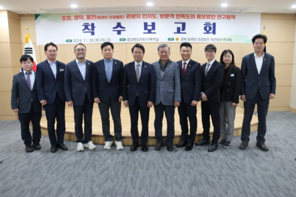 경북도의회 「경북 동해안 관광발전 개선방안 연구회」(대표 연규식 의원)는 28일(목) 9시20분 도의회 다목적실에서 “포항, 영덕, 울진(동해안 관광벨트) 관광지 인지도, 방문객 만족도와 홍보방안” 연구용역 착수보고회를 개최했다.