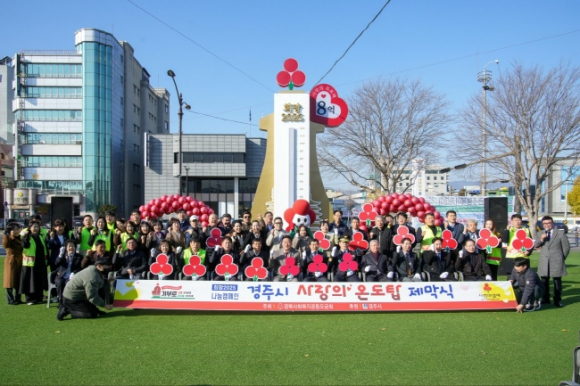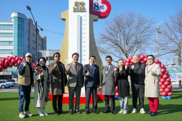경주시가 후원하고 경북사회복지공동모금회가 주최하는 희망 2025 나눔캠페인인 경주시 “사랑의온도탑” 제막식이 한국가수협회 경주시지회 홍성민 지회장의 사회로 진행되었다.