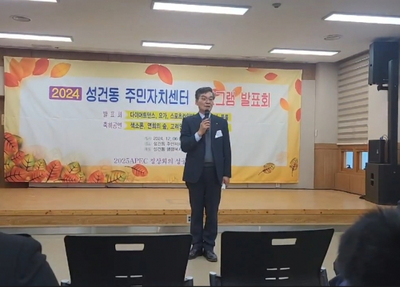 성건동 주민자치센터(위원장 김상규)에서 12월 6일 오후 2시부터 주민자치센터 수강생, 지역주민 등이 참여한 가운데 2024 성건동 주민자치센터 프로그램 발표회를 개최했다.