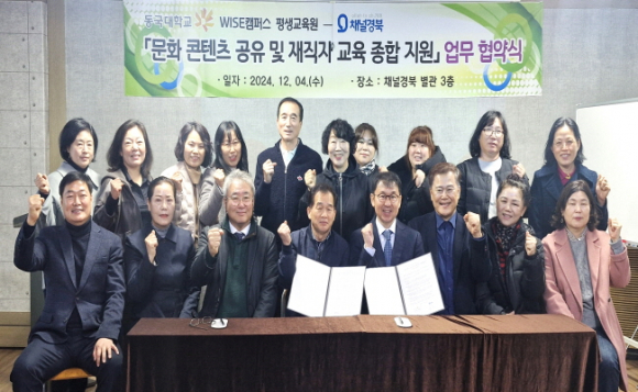 동국대 WISE캠퍼스 평생교육원이 지난 12월 4일 영천시 소재 채널경북 별관 3층에서 양 기관의 대표 및 관계자들이 참석한 가운데 ㈜채널경북과 함께 문화 콘텐츠 공유 및 재직자 교육 종합 지원을 위한 업무협약(MOU)을 체결했다. 이번 협약은 문화 콘텐츠를 활용한 평생교육 프로그램 개발과 지역사회 재직자를 위한 맞춤형 교육 지원을 목표로 하며, 이를 통해 지역 내 교육 및 문화 발전에 기여할 것으로 기대된다. 동국대 WISE캠퍼스 평생교육원 이영찬 원장은 "이번 협약을 통해 ㈜채널경북과의 협력으로 지역 주민들에게 더 나은 교육 콘텐츠를 제공하고, 재직자들의 직무 역량 강화에도 크게 기여할 수 있을 것"이라며 기대감을 나타냈다.