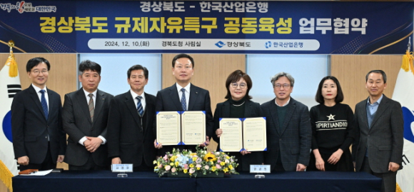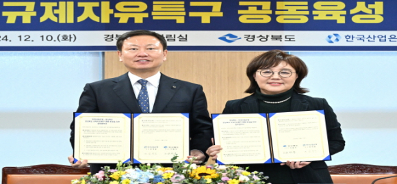 경상북도는 10일 도청에서 규제자유특구 참여기업의 안정적 성장을 위해 한국산업은행과 ‘규제자유특구 공동 육성을 위한 맞춤형 금융지원 업무협약’을 체결했다. 경북도는 2019년 특구 제도가 도입된 이후 비수도권 14개 시도 중 경남과 함께 가장 많은 5개 규제자유특구를 지정받아 지역의 신산업 생태계 구축 및 지역의 혁신성장 동력을 확보했다. 2019년 배터리 리사이클링(포항)을 시작으로 2020년 산업용 헴프(안동), 2021년 스마트 그린물류(김천), 2022년 전기차 차세대 무선 충전(경산), 2024년 세포배양 식품(의성) 규제자유특구까지 쉼 없이, 규제개선을 통한 지역 신산업 육성을 위해 씨를 뿌리고, 열매를 맺어 특구가 성공적으로 안착할 수 있도록 노력하고 있다. 또한, 9월 2025년 신규 규제자유특구 후보특구 공모에서 포항의 ‘전기차 사용 후 핵심부품 순환이용’ 특구가 후보 특구로 선정되어 내년 최종 지정을 앞두고 있다. 이번 협약은 규제자유특구를 통한 신사업 발굴과 참여기업 스케일업 지원을 위하여 체결되었다. 특구 내 기업 유치와 입주기업의 성장을 위한 맞춤형 금융지원을 위해 마련했다는 점에 의미가 있다. 또, 지난해 11월 산업은행과 체결한 이차전지·반도체 첨단전략산업특화단지 공동 육성을 위한 업무협약을 통해 정책금융과 여신상품 지원 등 기업 지원에 힘쓰고 있다. 이번 협약을 통해 산업은행은 대구경북지역본부를 중심으로 특구 입주(예정) 기업을 대상으로 산업별 금융상품 지원, 금융자문 및 기업 맞춤형서비스를 제공하고 특구 공동육성을 위해 협력을 강화해 나갈 예정이다. 도내 5개 특구, 60여 개 기업(중견기업 6, 중소기업 35, 벤처기업 15)이 지원받을 전망이다.