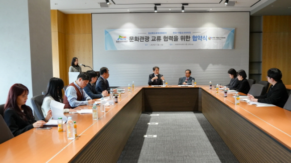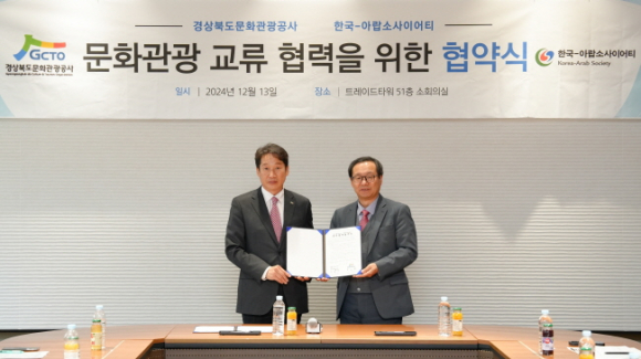 경북문화관광공사(사장 김남일, 이하 공사)는 13일 서울 한국무역협회 트레이드타워에서 한국-아랍소사이어티(사무총장 김창모)와 문화관광 분야 협력을 위한 업무협약(MOU)을 체결했다고 밝혔다. 이번 협약은 신라와 아랍의 천 년 전 교류 역사를 재조명하고, 이를 바탕으로 경북과 아랍 간의 문화 및 관광 교류를 확대하기 위해 마련되었다. 특히, 이번 협약은 2025년 APEC 정상회의가 경주에서 개최됨에 따라 경북의 국제적 위상을 강화하고 글로벌 문화관광 거점으로 발돋움하기 위한 초석이 될 것으로 기대된다. 한국-아랍소사이어티는 2008년 설립된 외교부 산하 기관으로, 한국과 아랍 국가 간의 경제, 문화, 예술, 학술 등 다양한 분야에서 상호 이해와 협력을 증진하기 위해 활동하고 있다. 특히 문화와 관광 분야에서 다수의 협력 프로젝트를 성공적으로 추진해 온 경험을 바탕으로, 이번 협약을 통해 경북과 아랍권 간의 실질적 협력 모델을 만들어갈 예정이다.