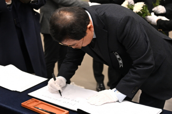 주낙영 경주시장이 2일 경북도청 동락관에 마련된 제주항공 여객기 사고 희생자 합동 분향소를 방문해 희생자들을 추모했다. 주낙영 시장은 이날 오후 5시쯤 송호준 부시장을 비롯해 경주시 간부 공무원 10여 명과 함께 합동분향소를 찾아 헌화했다. 주 시장은 “이번 사고로 고귀한 생명을 잃은 희생자들의 명복을 빈다”며 “필요한 것이 있으면 적극적으로 지원하겠다”고 밝혔다. 앞서 시는 제주항공 여객기 사고 피해자 추모를 위해 지난달 31일 예정됐던 제야의 종 타종식 행사를 취소한 바 있다.