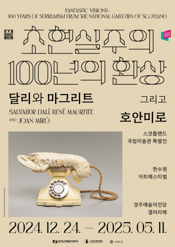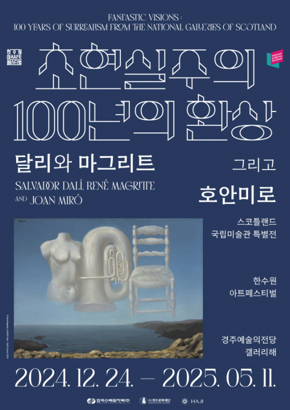 재단법인 경주문화재단(이사장 주낙영)은 임시공휴일인 27일과 설 연휴 전일 한수원아트페스티벌 〈달리와 마그리트 그리고 호안미로; 초현실주의, 100년의 환상〉을 정상운영한다. 설 연휴 기간에는 초현실주의 거장(살바도르 달리, 르네 마그리트, 막스 에른스트, 호안미로, 알베르토 자코메티 등)들의 주요 원화 작품 전시 관람뿐만 아니라 시민도슨트 등 다양한 이벤트에 참여하면 전시 굿즈를 증정한다. 〈달리와 마그리트 그리고 호안미로; 초현실주의, 100년의 환상〉은 한국수력원자력(주)의 지역사회 공헌을 위한 문화 매세나 활동의 일환으로 시작된 대형 특별전시이다. 2023년 ‘앙리마티스; 라이프 앤 조이’를 시작으로 ‘모네에서 앤디워홀까지’를 진행해왔으며, 이번에는 2024년 12월부터 올해 5월까지 초현실주의 거장들의 주요 작품 100여점을 경주에서 국내 최초 단독으로 선보인다. 경주문화재단 오기현 대표이사는 “이번 긴 설 연휴에 경주시민들과 경주를 찾은 관광객 및 귀성객들이 초현실주의의 소중한 원화작품도 관람하고, 이벤트가 가득한 경주예술의전당을 찾아 의미 있고 뜻깊은 명절을 보낼 수 있기를 바란다”고 밝혔다.