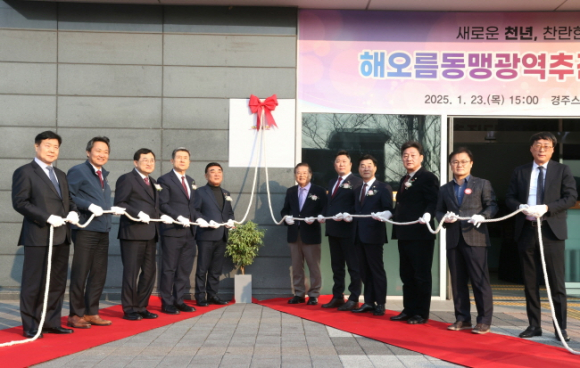 경주‧울산‧포항 3개 도시 상생협력의 중심축이 될 해오름동맹광역추진단(이하 추진단)이 경주스마트미디어센터 내 사무실 새단장을 마치고 23일 공식 출범식을 가졌다.