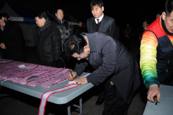 영천시의 2012년 해맞이 행사가 1일 마현산공원 내 영천지구전적비 앞에서 열렸다.
