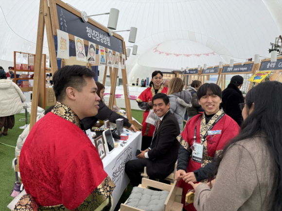 APEC 제1차 고위관리회의가 경주 화백컨벤션센터에서 성황리에 열리는 가운데 전통문화공연과 5韓체험존 등 K-컬처를 활용한 야외홍보관의 다양한 전시체험이 대표단에게 인기를 끌고 있다. 이 가운데 경주의 핫플레이스인 황리단길을 그대로 옮겨 놓은 듯한 ‘황리단길 청년 감성 스토어’ 팝업 부스가 대표단의 눈과 입맛을 사로잡고 있다. ‘황리단길 청년 감성 팝업스토어’는 경주의 청년작가들과 청년 사장들이 모여 한국을 방문한 대표단에게 경주의 K-콘텐츠의 힘을 보여주고자 합심해 전통 다과와 지역 특산품, 기념품 만들기 체험 등 다양한 프로그램을 선보이고 있다. ▴십원빵 ▴달고나 ▴커피 ▴꽃차 ▴약과 등 전통다과와 ▴캐리커처, ▴복주머니 만들기 ▴경주 향수 만들기 ▴한복원단키링 만들기 ▴한지노트 만들기 등 다양한 먹거리와 볼거리를 선보여 21개 회원국 대표단의 방문이 끊이질 않고 있다. 페루 대표단 일원인 플랭클린 톰슨씨와 까티야 빌체즈씨는 가장 인기 있는 달고나와 십원빵을 먹고 캐리커처 그리기 체험을 한 후 “경주를 처음 방문했다. 경주의 아름다운 풍경이 너무 훌륭했고 회의뿐만 아니라, 맛있는 음식과 캐리커처 체험을 하니 매 순간이 좋은 추억이 될 것 같다. 다음번에는 가족들과 함께 경주를 꼭 방문하고 싶다”고 말하며 연신‘나이스! 쿨!’을 외쳤다.