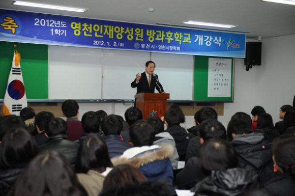 영천인재양성원이 지난 2일 2012년 1학기 개강식을 가지고 방과 후 학교 수업에 들어갔다. 2일 오후 6시 영천인재양성원회의실에서 열린 이날 개강식에는 재단법인 영천시장학회 이사장인 김영석 영천시장과 우은복 영천교육지원청 교육장을 비롯한 각 학교 교장 교감 학부모 등 140여명이 참석했다.