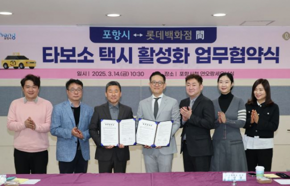 포항시는 롯데백화점 포항점과 14일 시청 연오세오실에서 ‘타보소 택시 활성화를 위한 업무협약(MOU)’을 체결했다.