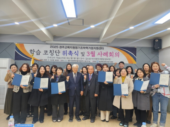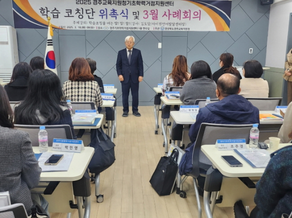 경주교육지원청기초학력거점지원센터(센터장 김시용)는 3월 18일(화) 경주기초학력거점지원센터 연수실에서 경주, 영천 지역에서 선발된 2025년 학습코칭단 20명에 대한 위촉식을 가졌다. 이날 위촉장을 받은 학습코칭단들은 위촉식을 통해 한층 더 사명감을 갖게 되었으며, 학생 한 명 한 명에게 좋은 어른으로서 모범이 될 것과 “맞춤형 학습서비스”를 통해 교실 수업에 적응할 수 있는 힘을 길러 주기 위해 부단히 노력해야겠다는 다짐을 전했다. 위촉장을 받은 20명의 학습코칭단들은 3월 말부터 경주, 영천 지역 학교를 직접 방문하여 교실 수업에 어려움을 겪는 학생들에 대해 개별 맞춤형 학습서비스(이하 “학습코칭”)를 제공한다. 학습코칭단은 학습지원 대상학생의 학습 부진의 원인을 다각도로 파악하여 개별 맞춤형 학습서비스를 주 1회 2시간씩 12월 말까지 제공할 예정이다. 이를 통해 학습지원 대상학생들의 학교 수업 및 학교생활 적응력 향상과 학력증진에 도움이 될 것이다. 이번 위촉식에는“학습코칭을 위한 말! 말! 말!”이란 주제로 언어재활사 김도담 강사의 주제 강연이 이어졌다. 언어적 소통이 학습코칭에서 무엇보다 중요함을 강조하며 학습코칭단들이 배움이 느린 학생들과 소통하는 방법과 자세를 구체적인 사례와 함께 전달하였다.