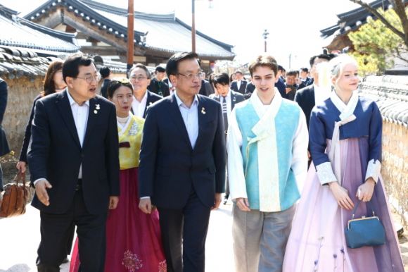 최 권한대행은 이날 오전 경주 화백컨벤션센터(HICO)에서 APEC 정상회의 준비 현황을 보고 받고, 교통·숙박·보안·의료체계 등 핵심 분야를 직접 확인했다. 이 자리에서 최 대행은 “제1차 고위관리회의(SOM1)가 성공적으로 마무리되며 한국의 리더십을 국제사회에 알릴 수 있는 기회가 됐다”며 “정상회의의 성공적 개최를 위해 경주시와 관계 기관이 협력해 철저한 준비를 갖춰 달라”고 당부했다. 이어 교촌한옥마을로 자리를 옮긴 최 대행은 주낙영 경주시장의 안내를 받아 시설을 둘러보며, 전통차 다도 체험, 한복 체험, 떡 만들기, 전통주 시음 등 전통문화 체험 프로그램을 점검했다. 이 자리에서 최 대행은 외국인 관광객 유치를 위한 개선 방안과 체험형 관광 상품 확대 방안도 꼼꼼히 살폈다. 이어 교촌한옥마을內 ‘경주최부자아카데미’에서 민생경제점검회의를 주재하고, 지역 경제 및 관광 활성화 방안에 대해 적극 청취했다.