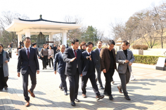 이후에는 APEC 공식 만찬장으로 검토 중인 국립경주박물관을 방문해 행사 운영 구상과 연계 콘텐츠 활용 방안 등을 살폈으며, 경주시 및 APEC 준비지원단과 간담회를 열어 준비 과정을 재확인하고 향후 과제에 대해 의견을 교환했다. 김석기 국회 외통위원장은 “경주는 신라 천년의 역사를 간직한 대한민국 대표 문화도시이자, APEC 정상회의를 성공적으로 개최할 수 있는 최적의 장소”라며 “이번 현장 방문을 통해 철저한 준비 과정을 직접 확인했으며, 국회도 정부와 긴밀히 협력해 경주가 국제도시로 도약할 수 있도록 적극 뒷받침하겠다”고 밝혔다. 주낙영 경주시장은 “경주는 세계 어느 도시와 견주어도 손색없는 역사문화도시”라며 “이번 APEC 정상회의를 통해 경주의 위상을 세계에 알리고, 성공적인 개최를 위해 모든 역량을 집중하겠다”고 강조했다. |