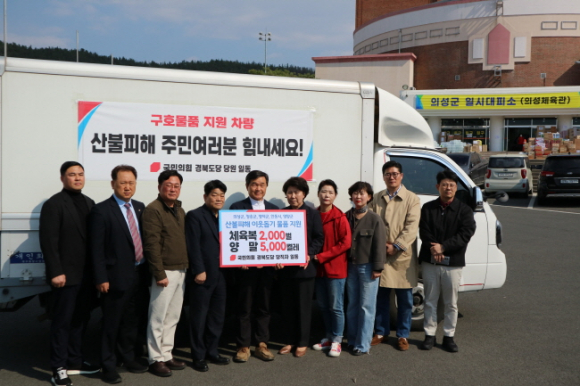 국민의힘 경북도당(위원장 박형수 국회의원)은 금일 4월 1일 경북 관내에서 발생한 대규모 산불로 큰 피해를 입은 주민들을 돕기 위해 구호품을 전달했다.