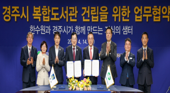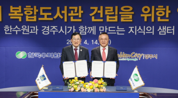 경주시는 14일 한국수력원자력(주) 본사에서 ‘경주시 복합도서관 건립’을 위한 업무협약을 한국수력원자력과 체결했다고 밝혔다. 이번 협약은 한수원 본사 경주 이전에 따른 지역 지원사업의 일환으로 추진되는 것이다. 당초 지역 인재 양성과 교육환경 개선을 위해 자율형 사립고(자사고) 설립을 검토·추진해 왔으나, 정부 방침과 교육 정책 변화로 인해 실현이 어려워짐에 따라 대안으로 복합도서관 건립이 결정됐다. 특히 총사업비 787억 원 전액을 한수원이 부담해 추진되는 사업으로 지역사회에 큰 의미를 갖는다. 복합도서관은 경주시 황성동 948-5 일원에 부지 30,000㎡, 연면적 11,108㎡ 규모(지하 1층, 지상 3층)로 건립되며, 도서관 기능은 물론 다양한 문화 프로그램과 체험 활동이 가능한 시민 복합문화공간으로 조성될 예정이다. 황주호 한수원 사장은 “경주 복합도서관이 단순히 책을 읽는 공간을 넘어 시민의 성장을 지원하고, 체험하며 소통이 이뤄지는 공간이 되길 바란다.”고 전했다.