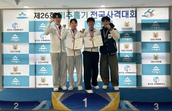 동국대학교 WISE캠퍼스 사격부가 지난 7일부터 13일까지 인천 옥련국제사격장에서 열린 제26회 전국사격대회에 참가하여 남자대학부 50M 복사, 3자세 종목에서 개인전 우승과 단체전 동메달을 획득하며 2025년 첫 대회를 성공적으로 마무리하며 힘찬 출발을 시작했다. 이종빈(글로컬인재학부1)선수는 50M 복사 개인전에 출전하여 619.5점으로 대회신기록을 수립하며 금메달을 획득했다. 또한 50M 복사 종목과 3자세 단체에 출전한 조승찬(스포츠과학전공3), 박유빈(스포츠과학전공2), 배상인(행정경찰공공학부2), 문정민(스포츠과학전공2), 이종빈(글로컬인재학부1) 선수들은 동메달 2개를 획득하였다. 동국대 WISE캠퍼스 하성 학생처장은 “전국사격대회에서 우승을 거머쥐어 좋은 결과를 보여주고 있는 우리 선수단이 자랑스럽다”며 “향후 더 좋은 성과를 낼 수 있도록 지속적인 지원에 최선을 다하겠다”고 말했다. 동국대 WISE캠퍼스 최현규 사격부 감독은 “동국대 WISE캠퍼스, 경상북도체육회, 경주시의 많은 지원과 관심을 덕분에 좋은 결과를 가져 올 수 있었으며, 앞으로도 우리 선수단은 이에 만족하지 않고 더욱 분발하여 이번 시즌 최고의 성적을 이루겠다”고 각오를 다졌다.