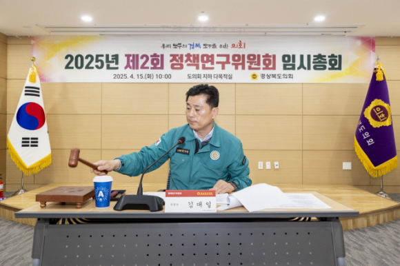 경상북도의회 정책연구위원회(위원장 김대일 의원)는 4월 15일(화), 도의회 다목적실에서 ‘2025년 제2회 정책연구위원회 임시총회’를 성공적으로 개최했다.