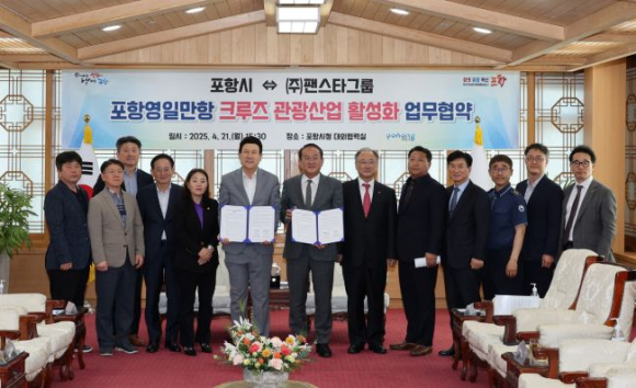 시는 21일 시청 대외협력실에서 ㈜팬스타그룹과 업무협약을 체결하고, 영일만항을 모항·기항지로 삼아 연 4회 이상의 크루즈 운항에 노력키로 했다.