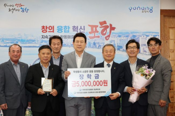 포항시는 21일 대한건설협회 경상북도회(회장 최진현)와 포항시운영위원회(회장 김시환)가 지역 인재 양성을 위한 장학금 500만 원을 포항시 장학회에 기탁했다고 밝혔다.