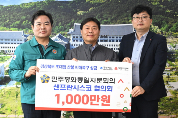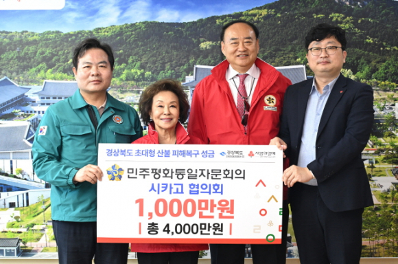 민주평화통일자문회의 필라델피아·샌프란시스코·시카고 협의회(이하‘미주 평통’)가 12일 경북도청을 방문해 경북 지역 초대형 산불 피해 복구를 위한 성금 3,400만원을 전달했다.