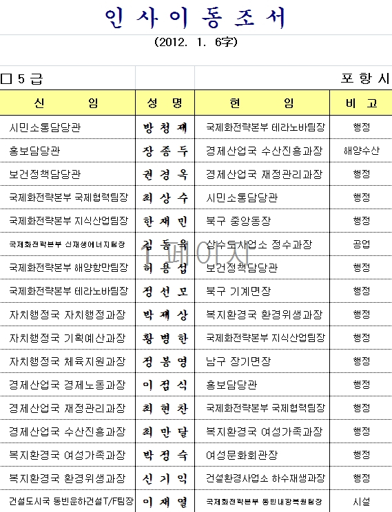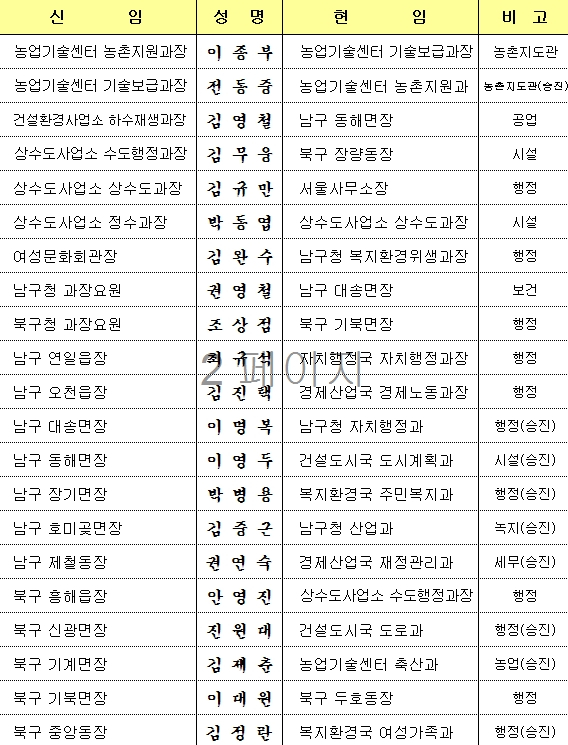 - 5급 승진 10명 포함 시민소통담당관에 방청제 등 40명 전보인사