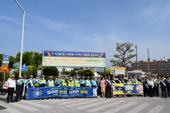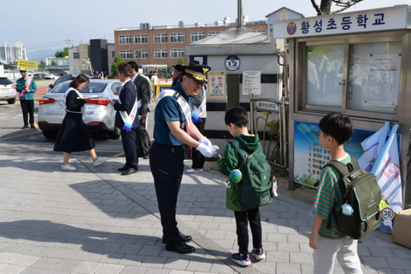 경주경찰서(서장 양순봉)가 지난 13일 오전 8시 경주시 황성초등학교 정·후문에서 어린이 및 어린이 통학 차량을 대상으로 전 좌석 안전띠 착용을 홍보하는 교통안전 캠페인을 실시했다. 이번 교통안전 캠페인에는 경주경찰서, 경주시청, 경주교육지원청 등 유관 기관과 녹색어머니회, 모범운전자회 등 70여명이 참여했다. 이날 경주경찰은 어린이들의 안전을 위해 반드시 모든 좌석에서 안전띠를 착용 시켜야 한다는 점을 강조하며 안전띠 착용 수칙이 담긴 리플렛을 배부하고, 어린이들에게는 안전에 관한 관심을 높이기 위해 어린이용 문구를 나눠주며 전 좌석 안전띠 착용을 강조하는 등 안전한 교통문화 확산을 위한 운동을 전개했다.