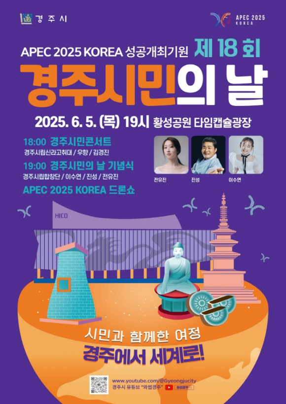‘시민과 함께한 여정, 경주에서 세계로!’를 주제로 열리는 이번 행사는 경주의 발전을 이끈 시민의 자긍심을 기리고, 2025 APEC 정상회의의 성공 개최를 기원하는 화합의 장으로 마련된다.