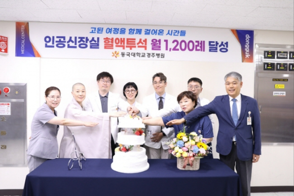 동국대학교 경주병원(병원장 신혜경) 인공신장실이 2025년 5월 기준으로 월 1,200례의 혈액투석을 시행하며, 지역 내 신장질환 치료의 중심 기관으로서 입지를 강화하고 있다. 병원은 이 같은 성과를 기념해 행사를 열고, 인공신장실 의료진들의 노고를 치하하는 시간을 가졌다.