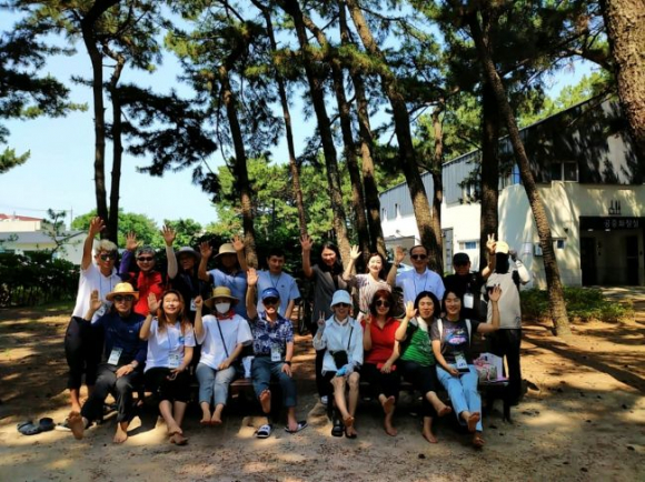 | ↑↑ 지난 18일 송도 솔밭길에서 진행된 맨발걷기 40선 상반기 강좌 마지막 수업 기념사진. |