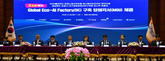 경상북도는 6월 26일 포항시청 대회의실에서 양금희 경상북도 경제부지사, 이강덕 포항시장, 김동훈 NHN 클라우드 대표, 박성빈 트랜스링크캐피탈(TransLink Capital) 대표, 안현덕 텐서웨이브코리아(TensorWave KOREA) 대표, 김태희 현대건설(주) 전무 등 100여 명의 주요 산․학․연 대표들이 참석한 가운데 ‘Global Eco-AI Factory 구축’을 위한 민·관 공동 업무협약을 체결했다.