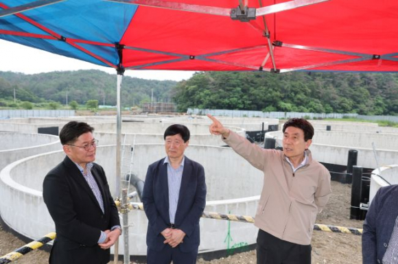 이어 이 시장은 장기면 일원에서 추진 중인 연어 스마트양식 클러스터 조성사업 현장을 찾아 공정 진행 상황을 살폈다. 이 자리에는 한희승 ㈜미래아쿠아팜 회장도 동행해 사업 전반의 현황을 공유하고 향후 계획에 대해 의견을 나눴다. 이 시장은 민관 협력 체계의 중요성을 강조하며 원활한 사업 추진을 위한 긴밀한 공조를 당부했다. 2021년 해양수산부 공모사업에 선정돼 추진 중인 이 사업은 장기면 일원에 총 22만 4,140㎡ 규모로 조성된다. 이중 테스트베드 부지는 2만 8,570㎡, 상업 양식장 배후 부지는 19만 5,570㎡다. 지난해 10월 착공한 테스트베드는 현재 공정률 50% 수준으로 지반공사와 해수 취·인입관 시설 공사가 완료된 상태다. 오는 11월까지 수조 설치를 위한 건축·토목 작업을 마무리하고 부대공사를 거쳐 올해 12월 준공을 목표로 하고 있다.