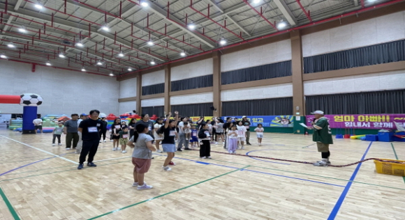 행사는 ‘행복팀’과 ‘화목팀’으로 나뉘어 가족 운동회, 만들기 체험, ‘육아왕 OX 퀴즈’ 등 다양한 프로그램으로 진행됐으며, 아빠 제기차기와 엄마 줄넘기 등 가족이 함께 참여하는 다채로운 경기가 이어졌다.