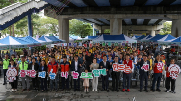 현장에서는 양말목 나무옷 만들기, 천연수세미 만들기, 심폐소생술 체험, 미용·네일 봉사, MBTI 성격유형 진단 등 남녀노소 누구나 즐길 수 있는 다채로운 재능나눔 부스가 운영돼 시민들의 발길이 이어졌다.