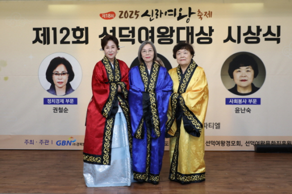 거산 대표 권철순 수상자는 여성기업인들을 위한 폭넓은 행보는 물론이고 운영하고 있는 사업체에서 임직원들의 복지를 위해 꾸준히 노력해 왔으며,동국대학교 WISE캠퍼스 이영경 직전총장은 총장 재직시에 학생들의 폭넓은 교류와 지적 성장을 위해 최선을 다했으며 각 시, 도와 협력, 다양한 위원회 활동으로 사회발전을 위해 노력해 왔고, 경상북도자원봉사센터 윤난숙 센터장은 간호사로 재직하면서 꾸준한 봉사를 펼쳐 경상북도 여성을 대표하는 경상북도여성단체협의회 회장을 역임했으며, 현재 경상북도자원봉사센터 센터장으로서 경북의 산불피해현장 등 22개 시군을 누비고 있는 공로가 커 선덕여왕 대상에 선정되었다.